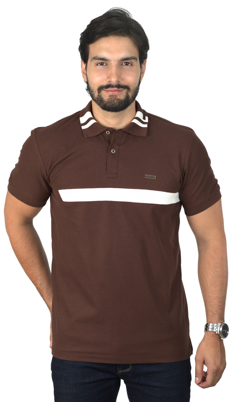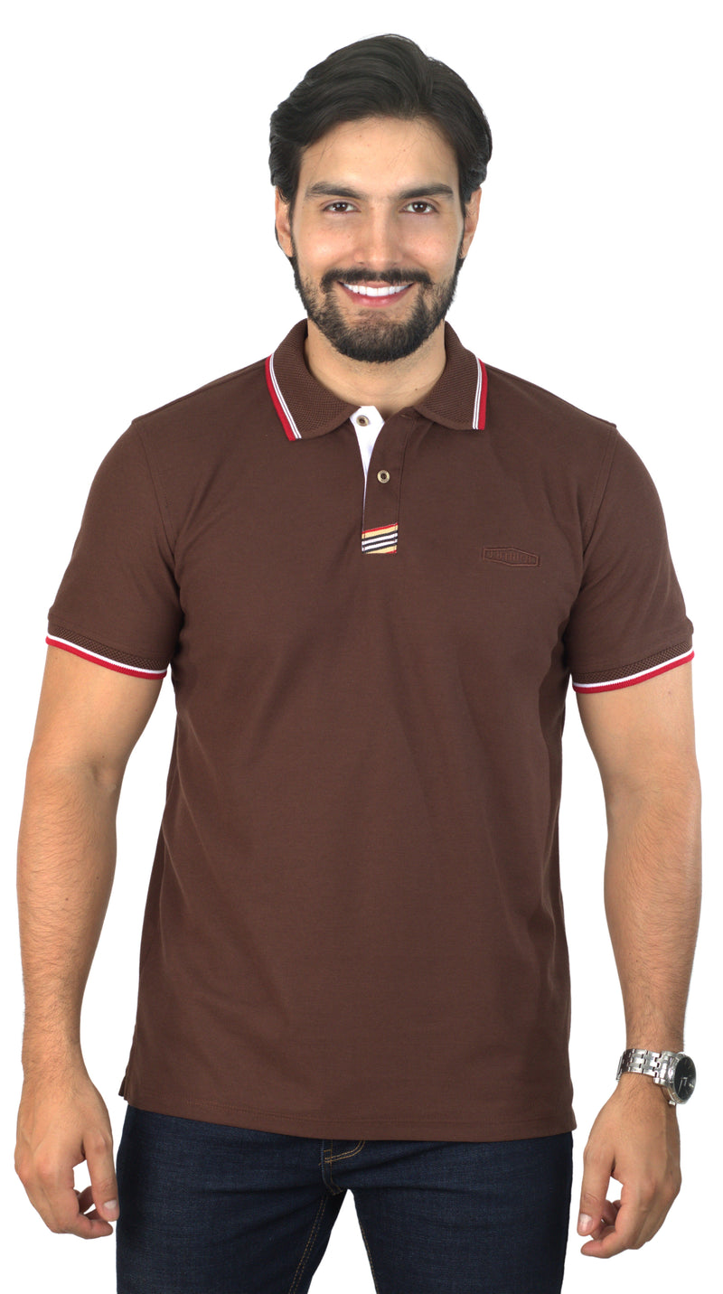 Camiseta Tipo Polo Combinada Para Hombre Jacquard Color Café Oscuro Blanco