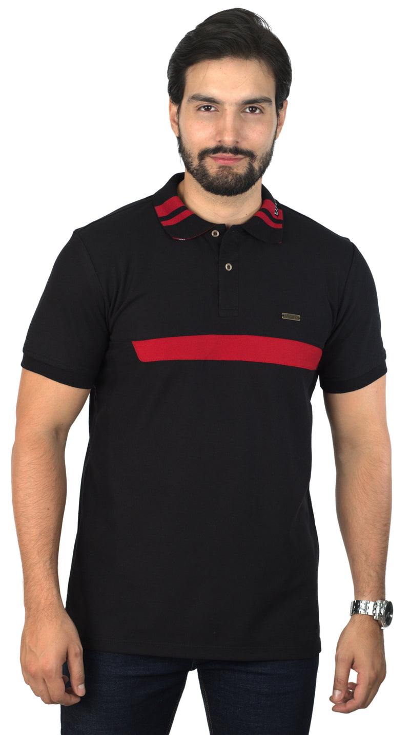 Camiseta Polo Combinada Negro-Rojo-Blanco 044C