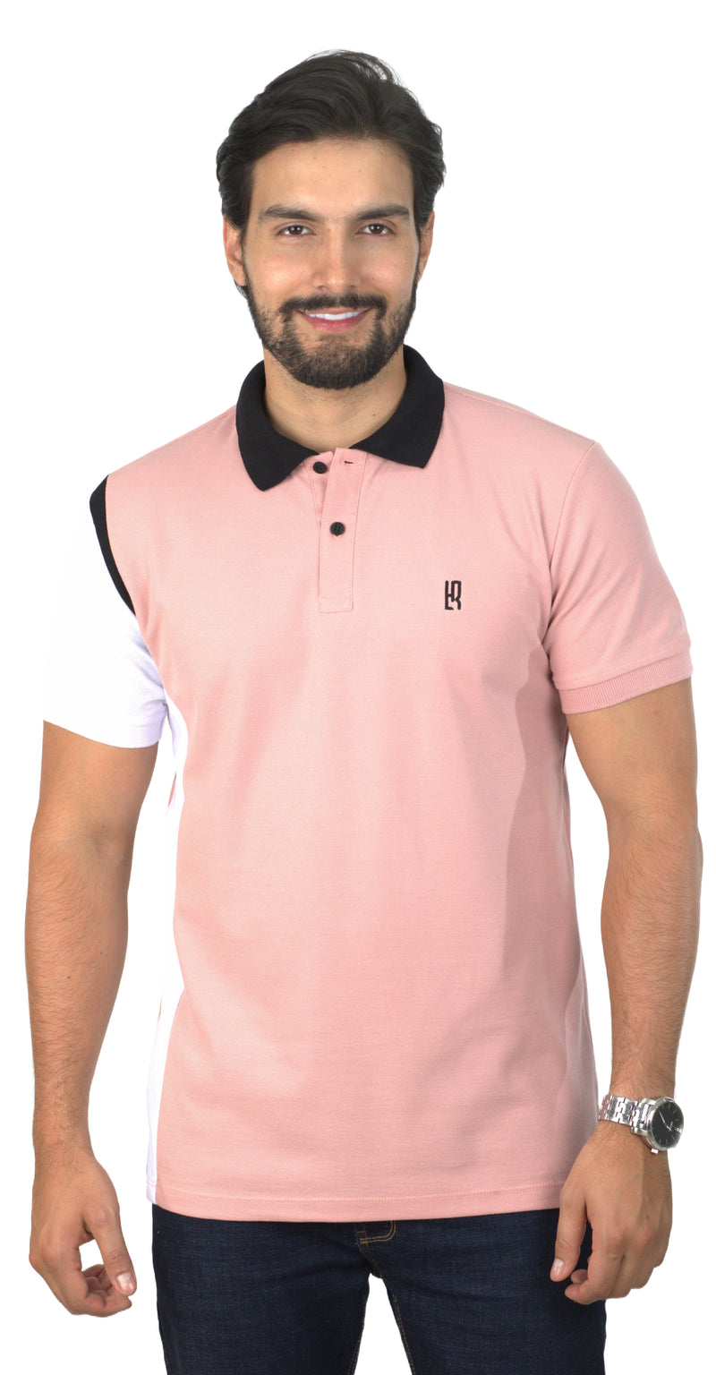 Camiseta Tipo Polo Combinada Para Hombre Color Guayaba Negro Blanco