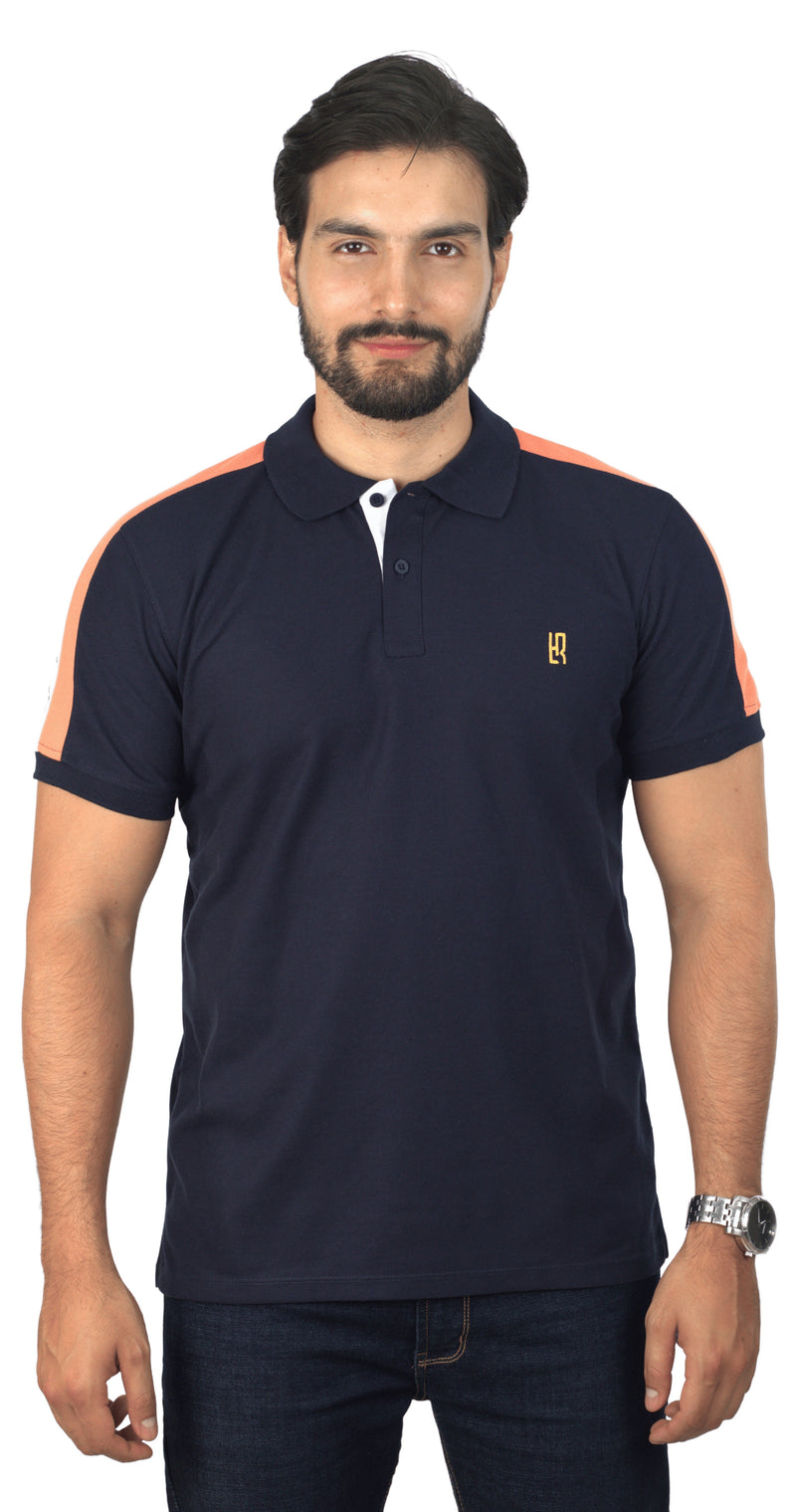 Camiseta Tipo Polo Combinada Para Hombre Jacquard Color Azul Oscuro Blanco Mandarina