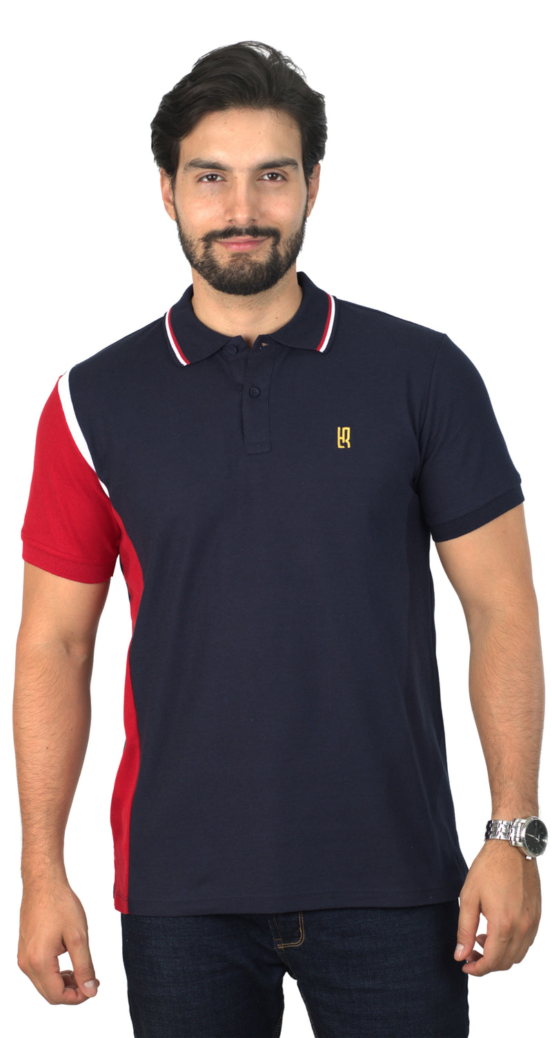 Camiseta Tipo Polo Combinada Para Hombre Color Azul Oscuro Blanco Rojo