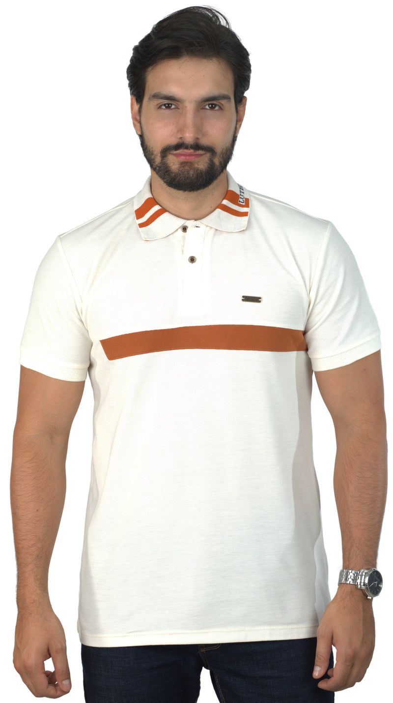 Camiseta Tipo Polo Combinada Para Hombre Color Marfil Terracota